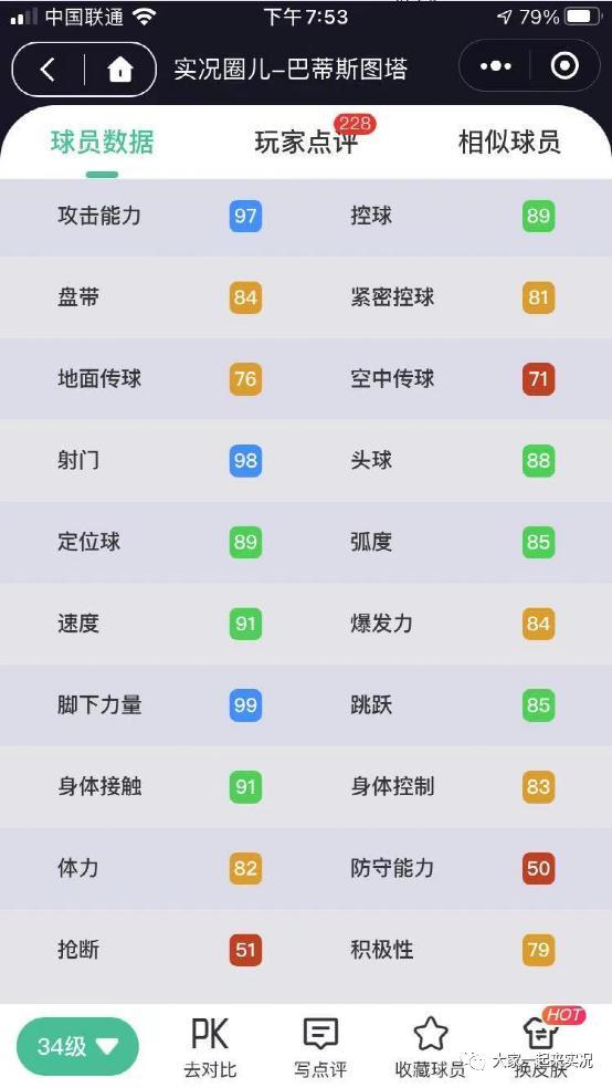 简要说明:这应该是削弱数据最要命的一个了!皮耶罗在实况里的招牌是啥?无非就是前场跑位--盘带控球过人闪出空档--一脚搓射直挂死角。攻击、控球、速度、力量全方位削弱,可以说刀子全扎了在要害部位。最讽刺的是四项重要属性削弱之后,满级总评竟然维持98不变,这更印证了那句话:只看总评真的是啥用没有。