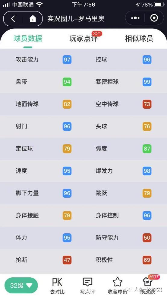简要说明:作为实况手游里为数不多的小快灵传奇中锋,本次投票后罗马里奥的等级上限也被削弱1级。除防守能力不谈,控球和脚下力量可以说是罗马里奥在对方威胁区域闪转腾挪和起脚怒射的灵魂,不过好在这两项属性的基础属性够高,就算削弱,满突后96的控球和脚下力量,也算够看了。