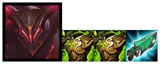 人马作为阵容的坦度承受点,核心装备推荐黑暗离子火花以及黑暗泰坦的坚决,这里人马的防装不做固定,但依旧是偏向黑暗装备为主,切合新版本破败军团羁绊的改动。