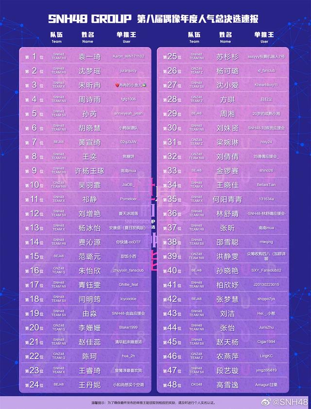 因资源有限,Top17-48的奖励一直较为模糊。今年丝芭又祭出了“移籍”这张王牌,意在进一步掏空腰部偶像后援会。