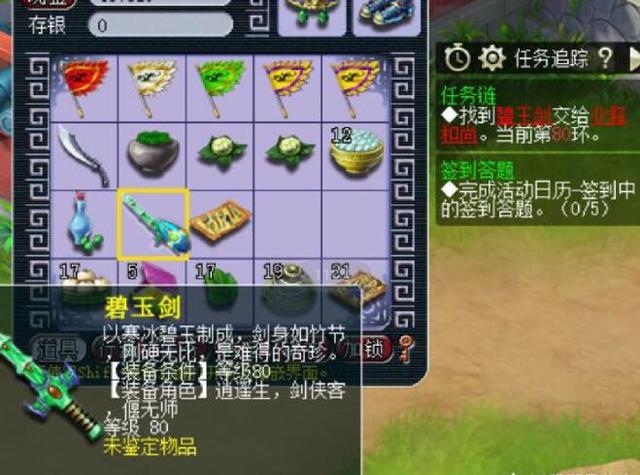 渡劫以下的玩家在任务链任务中都是可以通过传说的方式获得任务所需道具的,上面的这位玩家在传说时间内并没有获得自己所需要的传说道具,但是上面的这位玩家还是完成任务了,因为他在场景战斗中获得了一把80级的碧玉剑,而这把80级的碧玉剑刚好就是自己任务链所需要的道具,小编之所以能够判断出这把碧玉剑不是通过任务链传说出来的,那是因为传说出来的装备都是已经鉴定的状态,而上面这位玩家获得的未鉴定状态的装备。