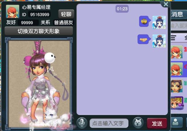 在梦幻中某些玩家是有可能会获得心易经理这样的专属客服的,正常的情况下只有那些充钱比较多的玩家才拥有这样的GM联系渠道,但是在本周维护之后有很多玩家都获得了专属客服的一天体验资格,而且一天体验资格里的心易经理跟其他的心易经理还不一样,因为一天体验资格的心易经理的角色形象是锦衣的,而且有的角色还穿着青花瓷锦衣。