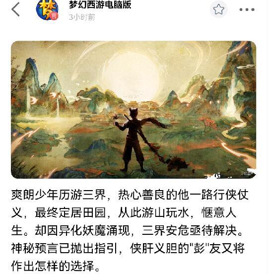 这是梦幻西游官方账号在昨天的时候刚刚曝光的一个新资料片的内容,在该新资料片中显示出来一个新角的剪影,策划小奇的之前也曝光过新角色的剪影,只不过那个时候的角色剪影是三个,现在的角色剪影是一个,也就是上面的这个角色有可能是新上线的角色,但是,小编感觉上面的这个剪影应该是一个NPC剪影,该NPC代表的就是彭昱畅的代言人NPC形象。