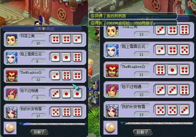 在梦幻中某些任务是需要通过掷骰子的方式来获得物品奖励的,就比如侠士级水陆大会副本任务,上面的这我玩家刷的就是侠士级水陆大会副本任务,在第一次掷骰子的时候获得了珍珠作为奖励,第二次没有获得珍珠,原因是上面的这位玩家掷骰子的时间稍微晚了一点,因为掷骰子的游戏玩法中,如果两名玩家的数字是相同的,那么物品将会给最先掷出来的那名玩家。