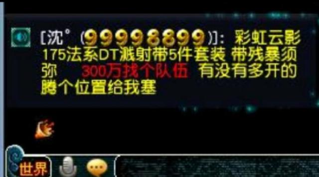 大唐官府是梦幻中人数最多的一个门派,但是大唐官府在梦幻中混队刷任务的时候却受尽了各种各样的歧视,而且在大唐官府中还有一些玩家玩的还比较奇葩,这些就那些拥有有着五件龙卷雨击套装的玩家,上面的这位175级拥有着五件龙卷套的大唐官府的玩家正在开价300万找队伍呢,但是小编感觉上面的这位玩家开价300万也不好混队,因为大唐官府带着龙卷套装刷任务的时候就是浪费时间,这样的大唐还不如那种纯溅射的大唐好混队,所以现在在梦幻中玩龙卷大唐的大多都是五开。