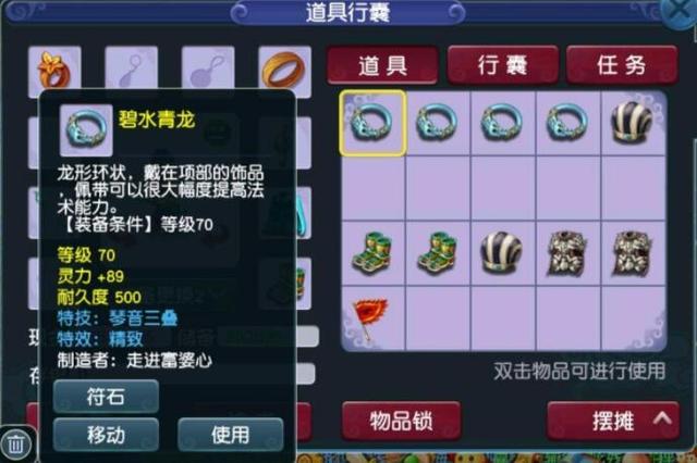 上面是一条70级由玩家自己打造出来的链子,这条70级的链子拥有着琴音三叠和精致双蓝字效果,这条链子上的这两个蓝字效果是非常值钱的,但是当这两个蓝字效果出现在这条70级的链子上时就不值钱了,因为这条70级的链子灵力低,而且还没有简易特效,这样的装备是没有人要的,他的价值仅仅只是用来完成任务链或者宝宝环任务。