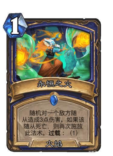 前期永恒之火,打德、瞎、猎、贼都好用,处理杂毛非常关键。另外,大地崩陷也是对抗快攻不错的选择。这两张之间也可以有点小配合,永恒之火可以为大地崩陷增伤1点,面对超生德很好用,简直可以说是带有针对性。