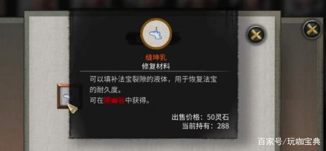 每一个法宝都有着自己的耐久度,当法宝耐久快用完的时候可以前往工坊修复,缝坤乳在陨幽谷可以获得,没太多说的。