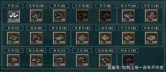 结合之前介绍的钱粮内政建筑,基本上开局的内政建设是这样的思路。