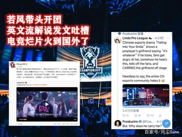 除了若风之外,这部烂片的上述剧情,还被前LPL英文流解说猫猫,发布在自己的推特上,解释了当时的剧情,并且表示中国电竞玩家也在怒喷这部剧,短短几小时,已经有了2.4万的点击量,这部烂片算是火到国外了。