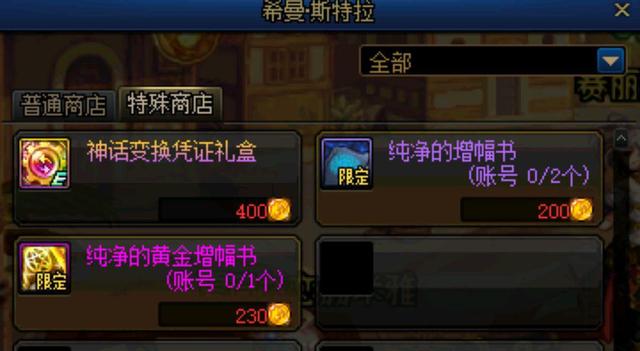 这次也不例外,此次的重点在特殊商店,可兑换遴选最高属性调整器,以及希洛克神话盒子,转移石!