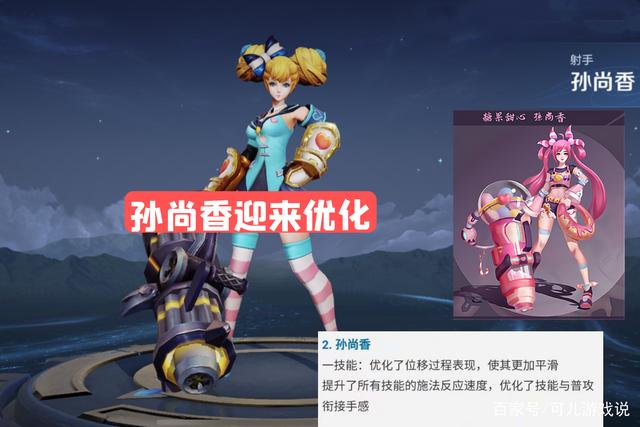 然后就是孙尚香的调整,孙尚香此次调整就是优化了一技能的位移过程,然后提升技能施法反应速度,优化技能与普攻的衔接手感,和猴子一样。