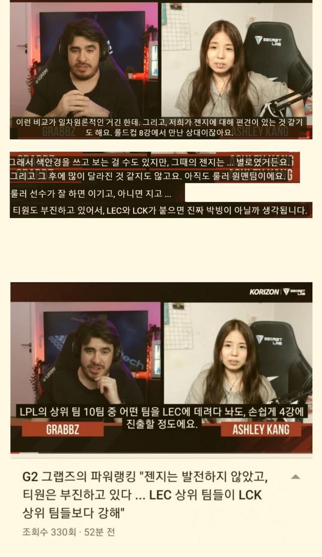 就是这位记者最近采访了LEC赛区G2战队的主教练Grabbz,采访的话题是讨论中韩欧三个赛区的强队,以及强队的实力对比等等。当G2教练被问到LCK与LPL相比有哪些强队?哪个队伍更强的时候,G2教练说了一番话,直接让Ashley目瞪口呆无法相信这是G2教练说的话。