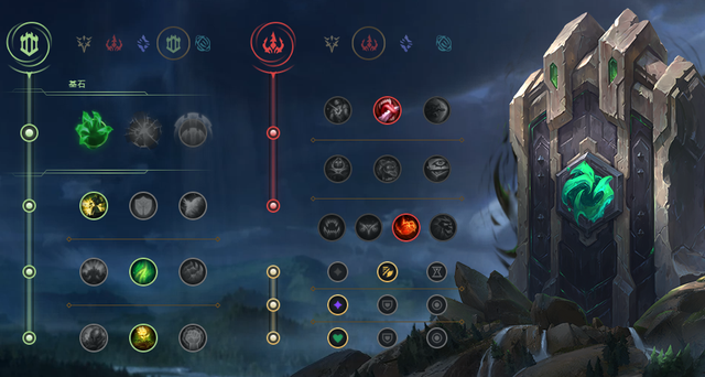上图这套是蒙多比较经典的符文搭配,单带端最需要的就是主系【爆破】这个符文,其效果就是提供一次对防御塔的爆破攻击,能够在短时间内造成巨量的防御塔伤害,可以提升蒙多的推塔效率。