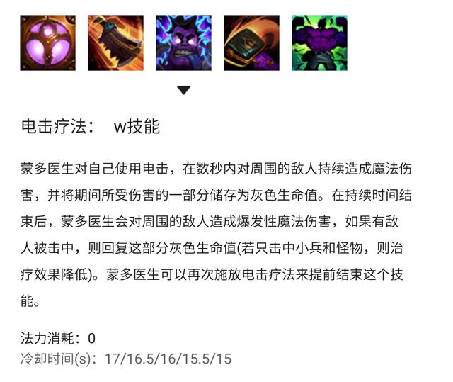 现在蒙多的W技能也可以获得回复效果了,在开启W技能之后,蒙多受到的一部分伤害会转化为灰色生命值,如果W技能的伤害效果打到了敌方英雄,这些灰色生命值将在技能持续时间结束后或主动结束技能后直接转化为血量,伤害效果没有命中敌方英雄时回复量只有一半。