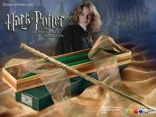 蔓藤木杖身,杖芯是龙心弦,尺寸不详,赫敏的魔杖是除主角外我个人最爱的魔杖之一,龙心弦这样硬派的杖芯反而衬托出赫敏内在的勇敢和强大,事实也正是如此,赫敏作为智商担当和学霸人设,用这根魔杖释放过很多复杂的魔法,事实上龙心弦制作的魔杖是最强大的魔杖,但是比较不忠,如果有比主人更强大的力量出现就极易发生叛变,不过至今出现过几位使用龙心弦材料的巫师都是很强大的,比如麦格教授。
