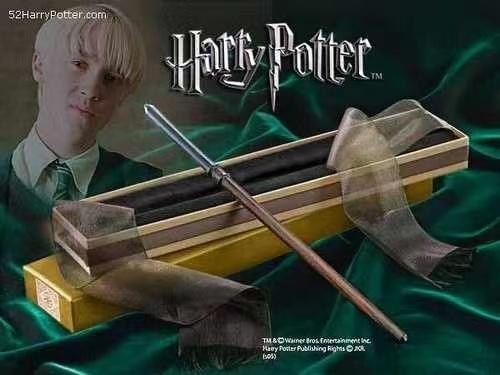 山楂木杖身,独角兽尾羽杖芯,十英寸,弹性尚可,单从外观上看,马尔福的魔杖深得我心,与他自身形象有些反差,魔杖设计的简单利落,马尔福的魔杖其实反转挺大的,作为电影中处处和主角团作对的反派之一,魔杖杖芯竟然是象征善良的独角兽尾羽,这也暗示着马尔福本质还是善良的男孩子,也为最后结局中马尔福拒绝加入食死徒一方埋下伏笔。