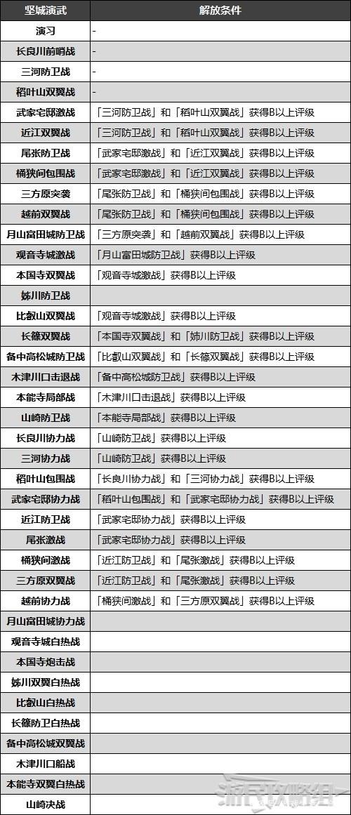 解锁新的坚城演武关卡需要之前的关卡获得B及以上评级。