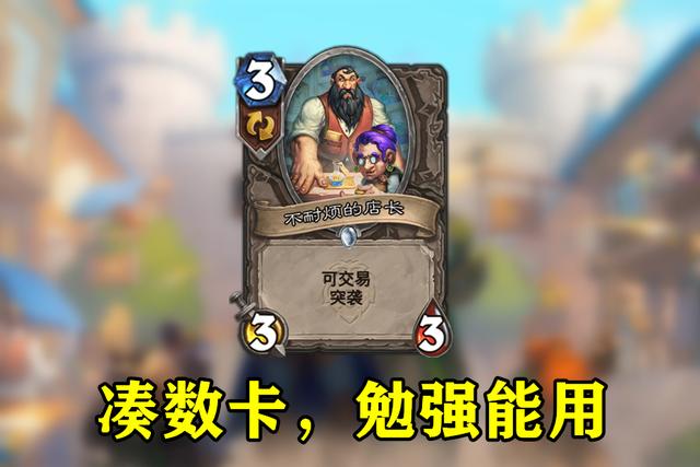 不耐烦的店长也是一张3费的中立随从,3-3身材,可以突袭解场。它的身材和特效就相当于女巫森林版本的突袭狼人,本身的强度中规中矩,多了个可交易效果,肯定会更强一点。