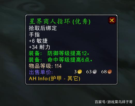 2.《游戏菜鸟祥子哥_魔兽怀旧服:星界商人指环 防御的毕业戒指 一个任务就可以获得》仅供读者参考,本网站未对该内容进行证实,对其原创性、真实性、完整性、及时性不作任何保证。