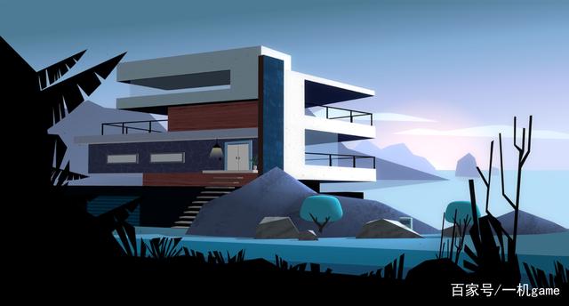 游戏里反派露比的宅邸以简洁明快的白色为主色调,极具现代主义风格。房间里的场景是60年代的卡通画风格,画面清爽简洁。房子里的装潢也是非常豪华,里面有漂浮的楼梯、内置的高级壁炉和高级石材装饰的墙面,现代装饰材料与自然材料形成了鲜明的对比。让人惊叹,大概这就是上世纪中叶的豪宅吧!