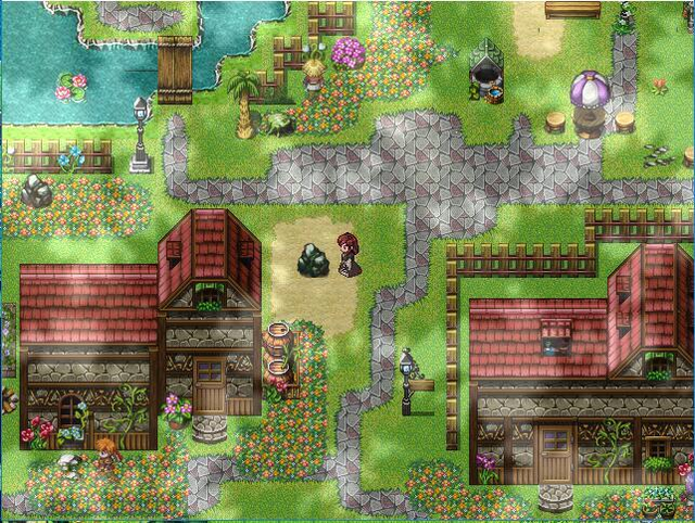 游戏画面中规中矩,和其他RM游戏没太大区别,毕竟是用同一个工具制作的。场景设计比较符合剧情的需要,比如水源村的阳光明媚,夜晚长溪径的静谧无人,氛围营造得还算不错。