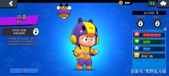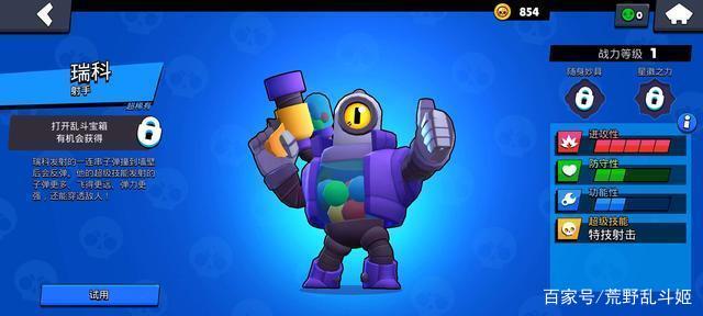 8比特,一个达到6000杯解锁的射手,同样这个射手的攻击性占据最大五格,强有力的输出力,普攻有点像柯尔特的普攻,对单体目标伤害比较集中。不过这个英雄用得玩家比较少。