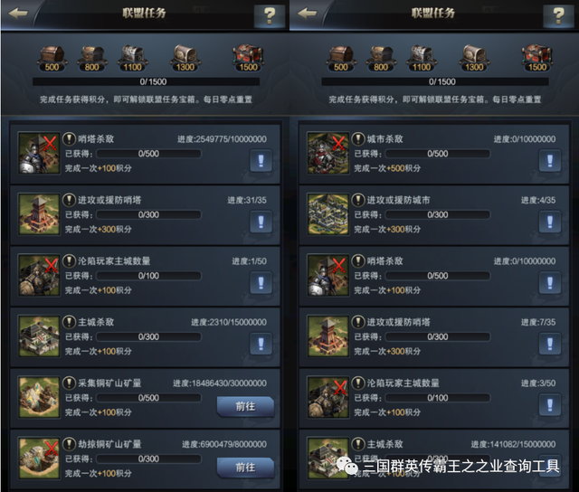 攻城日最容易完成的任务就是援防城市和哨塔了,援防下城市和哨塔就轻轻松松拿到600积分,联盟50个人去35个人援防再退就行了,单人只算一次的次数