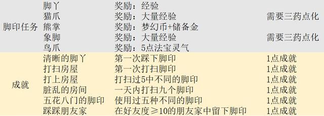 而且完成脚印类任务同样可以拥有成就,第一次踩下和第一次打扫脚印时都可以获得一点成就,之后就是打扫或者踩下不同类型的脚印,或者踩下脚印的数量时也可以获得成就,通过该玩法总共可以获得六点成就。