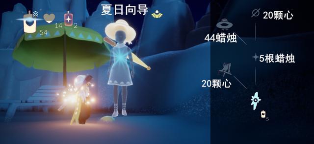 夏日向导带来一个草帽,一个沙发,草帽44根蜡烛,沙发20颗心。 这个草帽造型很好看。 光遇国服本次复刻先祖刚好就是草帽先祖。 个人觉得,这个夏日向导的草帽更好看。 如果现在蜡烛不够,可以先不换,留着换这个大草帽。