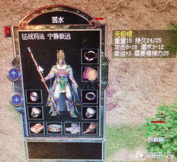 最后,道术12幸运加3的无极棍,以为的敏捷套道术低,其实完全可以靠+7武器加回来,腰带鞋子一应俱全,一身孤品的道士走哪都赚足了眼球。