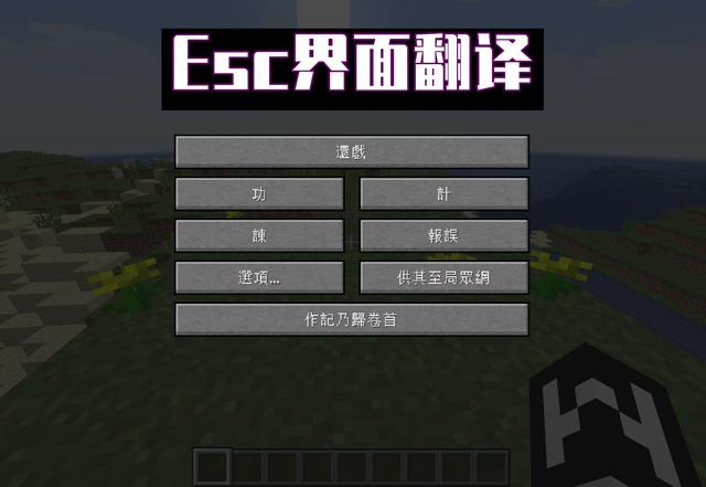 按下Esc键,JAVA版单机游戏模式下会暂停。这里可以进行一些设置。我们简单翻译一下。功:进度。計:统计信息。諫:反馈。報誤:也就是此前的漏洞报告。選項:用来控制声音、语言、资源包等基础性的设置。供其至局眾網:就是此前的“对局域网开放”,也就是联机相关的设置。作記乃歸卷首:意思就是退出当前的存档,回到开始界面。
