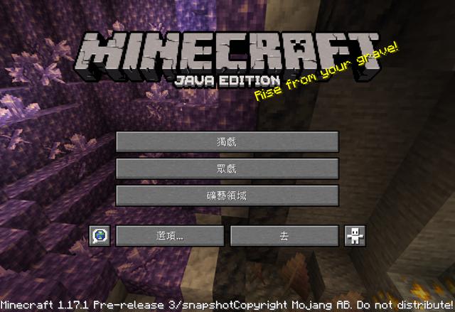 进入Minecraft 1.17.1的游戏界面,你会看到 獨戲(独戏)、眾戲(众戏)、礦藝領域(矿艺领域)、去,这几个奇奇怪怪的字符,甚至你都可能读不出它的读音;它们分别代表着:单人游戏、多人游戏、Minecraft realms,去=退出游戏。不得不说,用文言表达真的异常简单。