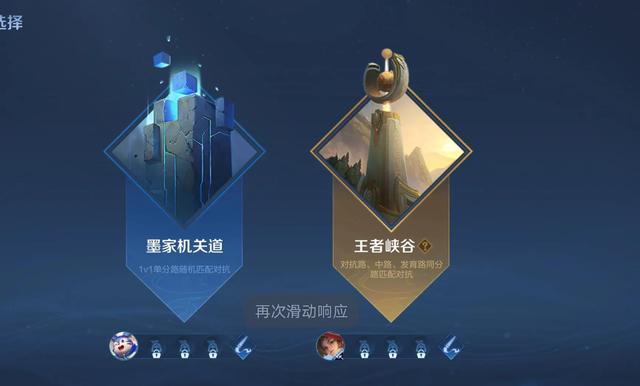 那么我们能够看到,当你点击单挑页面时,也就是大家所熟知的1v1,你就会发现两个地图,一个是传统的单挑,地图,墨家机关道,另一个就是王者峡谷。