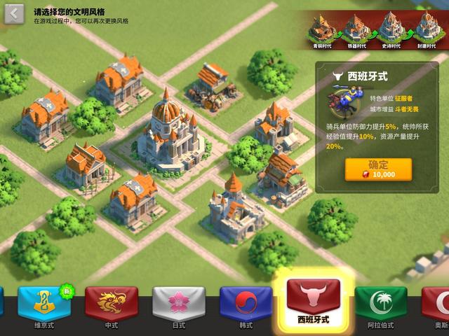 看到上面骑兵的好处,相信很多新玩家打算尝试一下,那么应该怎么搭配呢?首先建筑风格选择西班牙式,这个建筑风格能够提升骑兵5%的防御力,同时统帅获得的经验提高10%资源产量提高20%,这么一看就是为前期升级做准备的,别看这些幅度很小,实际上配合统帅的天赋,优势会非常明显。