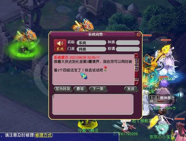 在正常的情况下每一个角色最多只能够佩戴一个四级的法宝,但是当玩家的角色达到了化圣第三重境界之后就可以佩戴两个四级法宝了,你们会带哪两个四级法宝呢?有的玩家表示自己会带重明战鼓再加上盘龙玉璧,因为重名战鼓佩戴后不需要损耗灵气,而且还可以增加召唤兽的物理输出和法术输出,而盘龙玉璧只要不触发也不会降低灵气,而且还能够增强自身的抗性。
