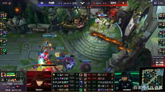 第三场对局DK教练kkOma非常头铁,给中野选出了零胜率的鳄鱼加豹女组合,上单和下路在这场比赛中的表现依旧不是很好,最终DK再次炸穿,又被NS横扫了一局,鬼皇这次归队真的是太惨了!