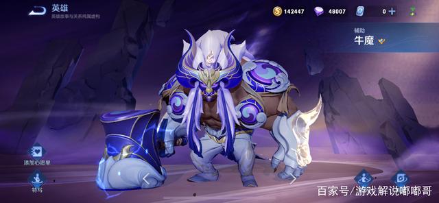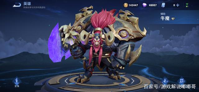 牛魔是一位典型的坦克型辅助,被动可以为附近的队友增加双抗效果,一技能可以减少敌人的输出,所以在打牛魔的时候,总感觉牛魔的坦度高,二技能和大招还可以对敌人造成击飞效果,该英雄装备成型之后,不但有坦度,并且开团能力也很强,因为大招范围比较大,可以打出团控效果,然后接一技能可以打出连控,并且大招还可以打出减速,一套技能将近两秒的控制时间,可以为队友创造良好的输出环境,所以高端局玩家非常喜欢牛魔这位辅助。