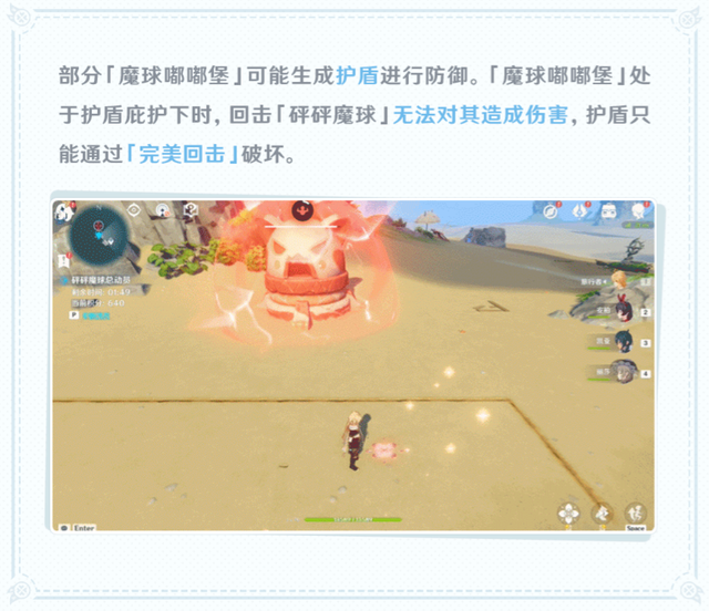 必须要用完美回击的情况!完美回击还不仅能用来造成更高的伤害,快速击杀魔球嘟嘟堡获取更高积分。有些地方还必须要使用完美回击,因为有些魔球嘟嘟堡会生成护盾进度防御。处于护盾保护时,魔球嘟嘟堡不会受到任何回击伤害。而这个护盾普通回击也没法对其造成伤害,所以也就没法打破这个护盾。只有完美回击打回去的魔球,才能破开这个护盾。根据演示中的情况来看,至少需要玩家打出两次完美回击,才能将这个护盾给破开。这就非常考验玩家的技术了,如果没法快速打出两次完美回击,将会浪费大量的时间而且得不到积分。