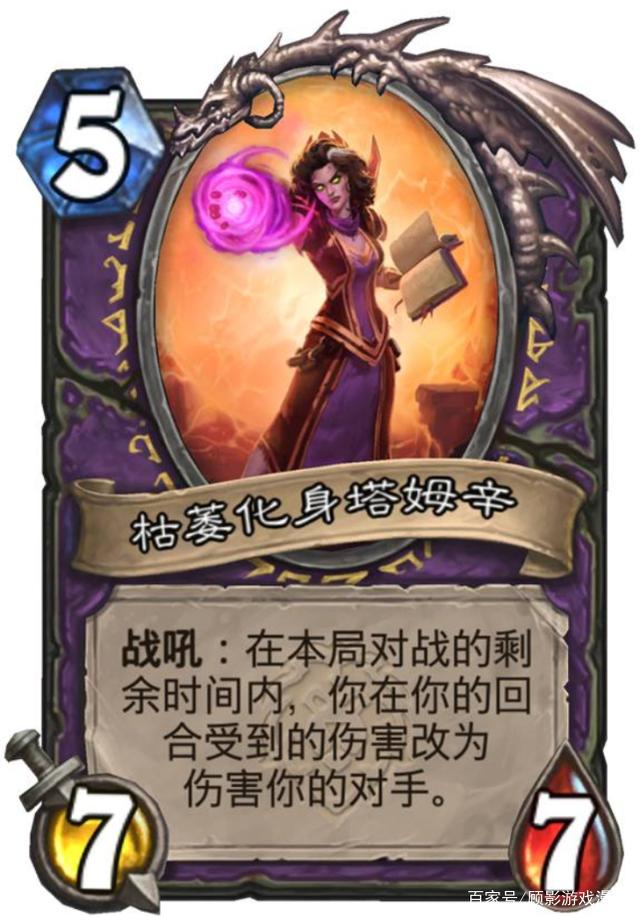 5/7/7塔姆辛,战吼,在本局对战的剩余时间内,你在你的回合受到的伤害改为伤害你的对手。以上三个阶段,一共需要对术士自己造成21点伤害。就算后面还有自伤卡,这要求也太高了点吧?