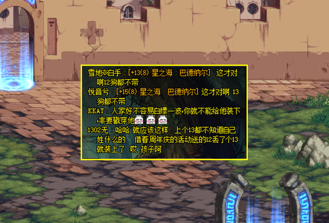 当然了!这样反侧例子还不少,一位剑魂在把星之海上到13之后,也是发个喇叭阴阳怪气地称:“12狗都不带”,一副成就感满满的样子。不料一位剑魂晒出了+15的星之海光剑光速打脸,复制玩家的那一段话,把12改成13狗都不带,瞬间让这位剑魂玩家颜面扫地,无地自容,公屏底下也有一群玩家笑开了花,果然白嫖来得13是最不值钱的,能白嫖到15才是本事。