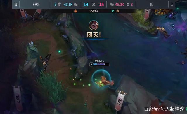 时间来到23分钟,IG众将终于找到了提速的机会,击杀落单的Nuguri阿卡丽后,IG集结五人之力进攻大龙,虽然他们成功收下大龙,但拍马赶来的Nuguri阿卡丽收割残局,在逆风的情况下,助FPX团灭IG,经济差距就此回到3000以内。