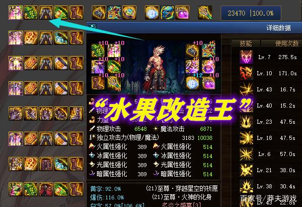 第三点最重要的原因在于,水果衣只需要搭配2件改造史诗,就能瞬间反超一线神话,平民玩家也能用得起的潜力黑马!(水果3件套搭配左槽和项链,只需要改5,就能反超顶尖纯史诗搭配)