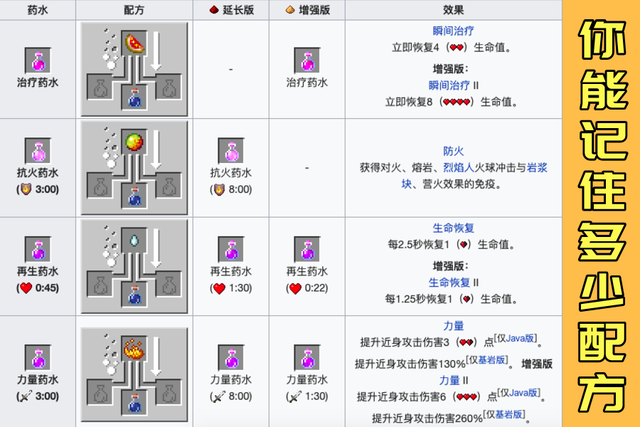 并且在效果上,药水能啃,能投掷,为什么还需要一个范围有限,且功效会受到范围内生物数量而影响的滞留药水呢?正所谓“比上不足比下有余”,犹如鸡肋一般,有,用了不是,没有不去合成更好。