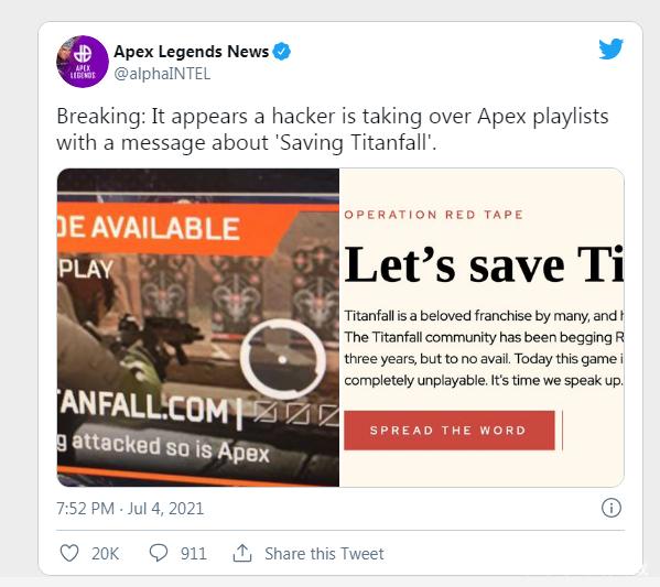 不过,SAVETITANFALL.COM发公告称,它们以及网站上列出的Discord 服务器,与最近《Apex英雄》的黑客攻击没有任何关联。