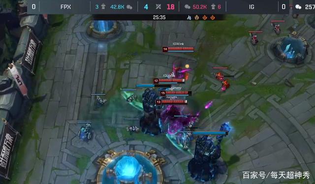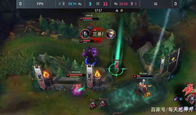 果不其然,进入游戏后,FPX率先发动进攻,先是Doinb克烈越塔击杀Rookie,随后野辅配合Doinb越塔,想要再次击杀Rookie,没曾想IG队友及时支援,Lucas宝石利用召唤师技能虚弱救下狗熊,配合Wink卡莉斯塔打出1换3,由IG取得些许经济领先。