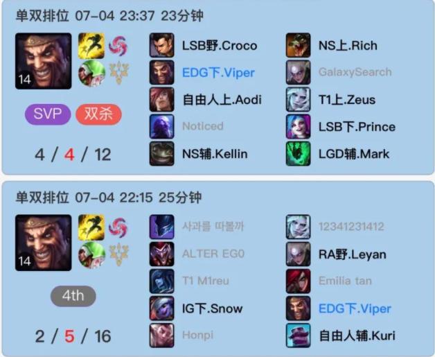 但能够获得这样的成就,其实也是有原因的。因为viper非常的勤奋。在最近跟TES的比赛当中,viper被阿水的德莱文教育得很惨。并最终输掉了比赛,可能也是觉得这个英雄很有意思,于是viper在输掉比赛回到基地之后,便开始练习起了这个英雄,没想到效果还非常的不错,虽然战绩不好看,但最终都有惊无险的赢了下来。