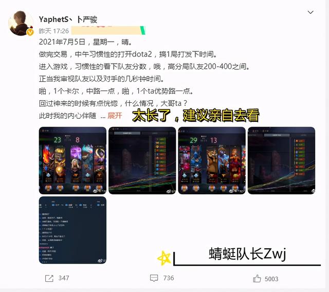 从文中可以看到,当Pis在“做完交易”(毕竟“韭神”卜菲特)后,打开了《Dota2》准备玩两盘。在排到对局后发现是高分局后(目前的Pis由于长时间没有玩Dota,水平下滑许多,以至于300+名的对局在他看来也算高分局了),在还没回过神来时便只给他留下了辅助位,而了解Pis的观众应该都知道,Pis可谓是对辅助位一窍不通的那种玩家了,但由于队友比他先选,他最终选择了妥协……