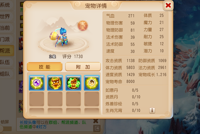 没错,一只4技能1.216成长的御风童子,加一只6技能1.223成长的凤凰仙子。