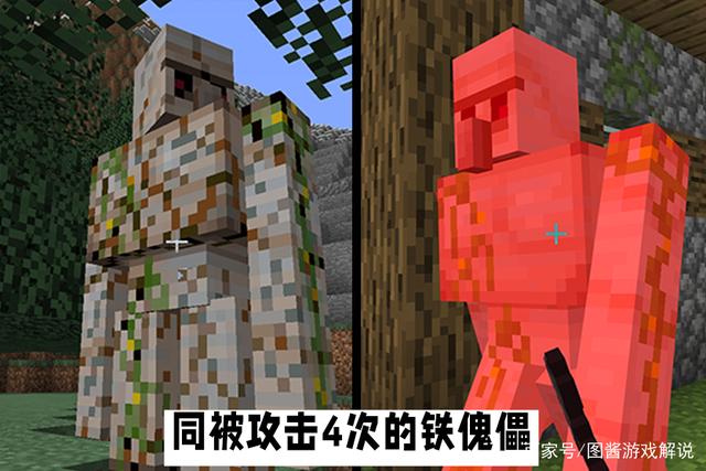 同样是铁傀儡,玩家使用下界合金斧进行跳劈攻击,且攻击次数都为4次,请问,哪个是java版本?